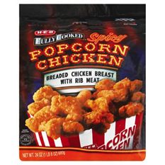Spicy Popcorn Chicken 20 oz. Step1 The chicken breast is cleaned and set aside the flour and bread crumbs are prepared the egg is removed from the shell and stirred into egg liquid for use. HEB Fully Cooked Spicy Popcorn Chicken.